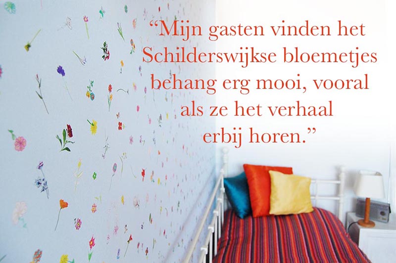 Mohamed, programmaleider van Bibliotheek Schilderswijk, stelde voor om het boek over Schilderswijkse bloemetjes op te nemen in de bibliotheek. En thuis heeft hij behang met Schilderswijkse bloemetjes aan de muur.