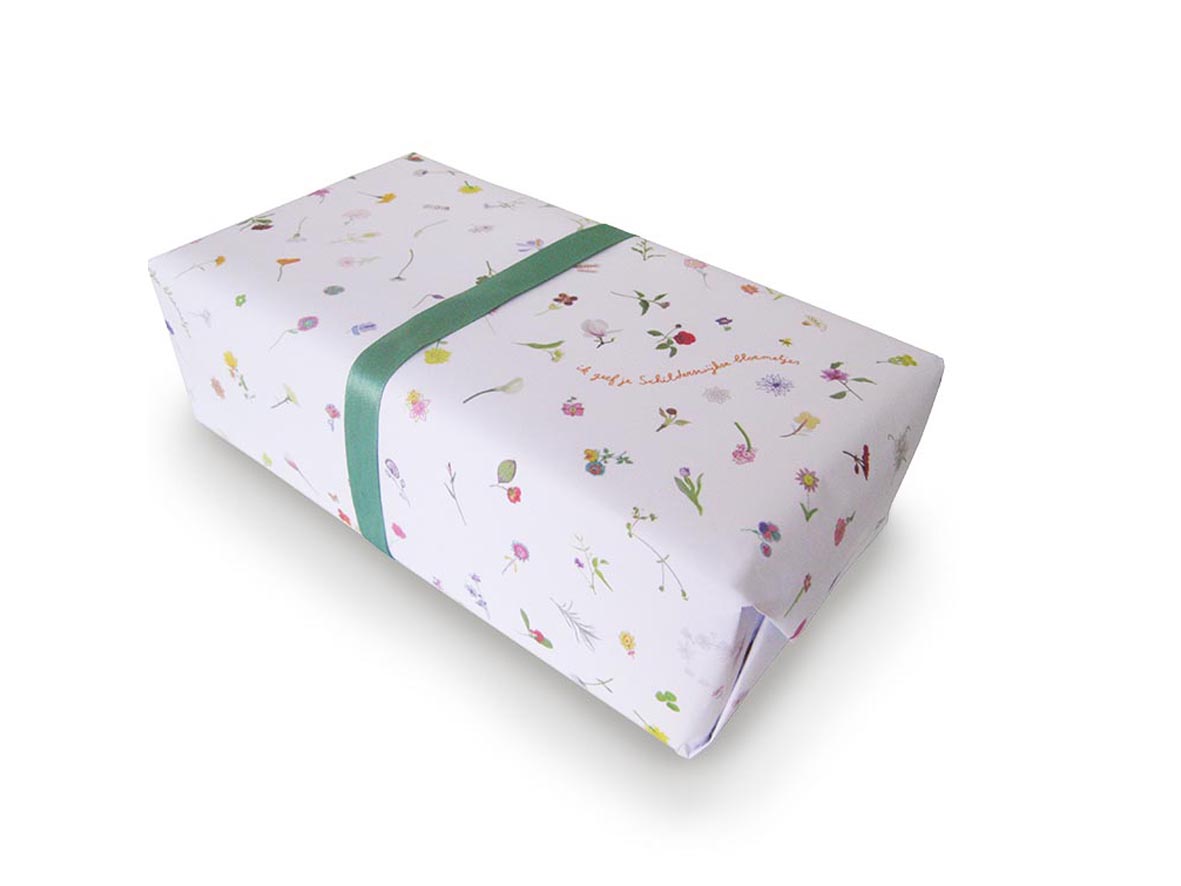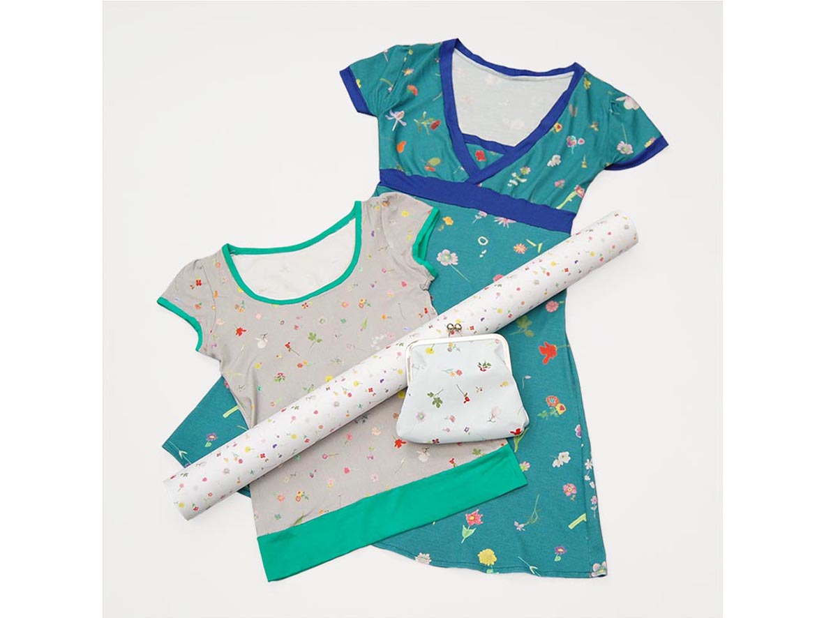 Fietsstickers, cadeaupapier, zakdoeken, behang, beddengoed, kleding, gebak, sjaals, kussens, tafelkleden, postpapier, krukjes, thee, tasjes, en een boek.