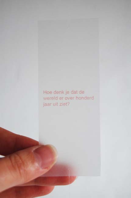 Because of the conversations that I had with people about forgiveness I expanded the research. Forgiveness dealt with my actual question only in an abstact way: how can we give eachother space? I was touched by the things people where wondering or narrating about, but which they didn't write down; a personal experience became alive out of it, which surprised me. I wanted to use those remarks as some kind of transfers: to show them to others and by that way bringing others in contact with the person that had occured them. The following meetings got more the form of a brainstorm/interview/worksession.
