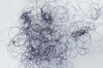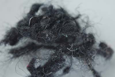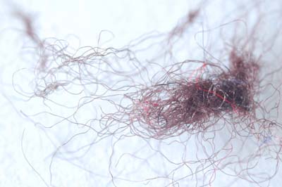 De mensen die ik sprak vroeg ik ook om een pluisje van hun eigen kleding aan mij te geven. Ik heb de pluisjes gefotografeerd. Ik vind het bijzonder hoe zo een klein textielobjectje toch al zo kan verschillen per persoon.