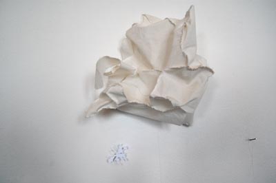 Ik had op dat moment geen duidelijk genoeg beeld bij Feathernotes om een stabiel werk te maken met een statement, of iets dergelijks. Het is dan ook een heel voorzichtig zoekend werk geworden. Het is een mobile, met de naam 'Globe', verwijzend naar een vaststaand wereldbeeld. Deze globe is echter totaal niet vaststaand, niet rond en niet wetenschappelijk onderzocht maar juist intuitief ontstaan.