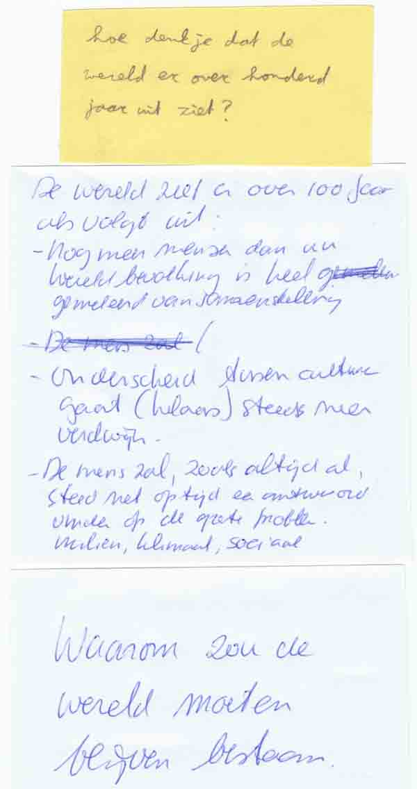 Na dat ik een tijd gesproken had met iemand in mijn atelier, vroeg ik diegene om zelf een vraag te formuleren, voor anderen.